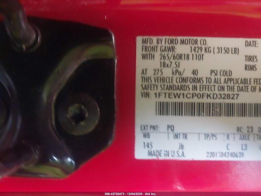 Колір ЧервонийЦиліндри 6VIN 1FTEW1CP0FKD32827Стан Заводиться та їде (перевірено)Ушкодження Передня або задня AutoRIA