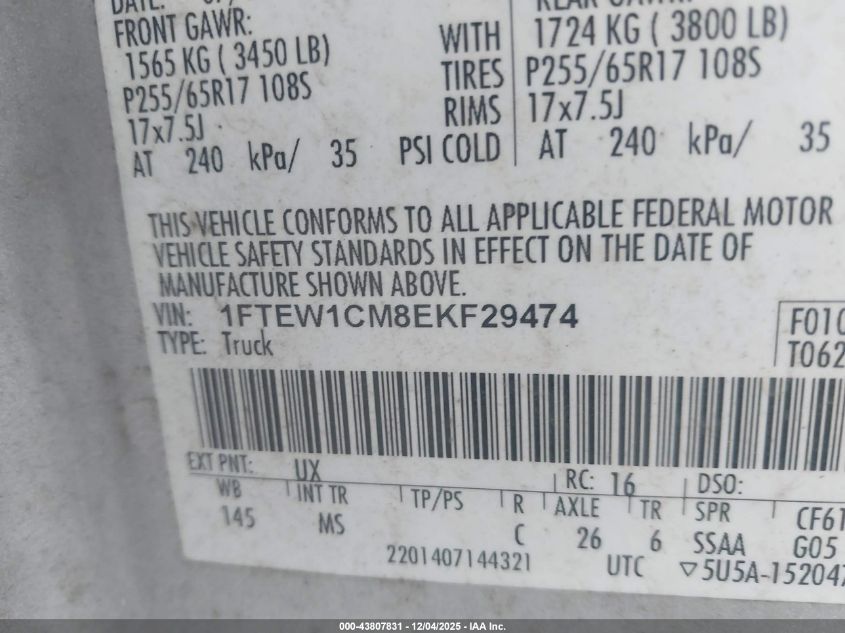 Колір СрібнийЦиліндри 6VIN 1FTEW1CM8EKF29474Стан СтаціонарноУшкодження Права сторона AutoRIA