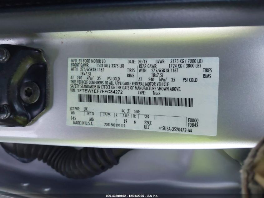 2015 FORD F-150 2015 року Бензин, 5.0, Повний привід, vin - 1FTEW1EF7FFC84272 з США