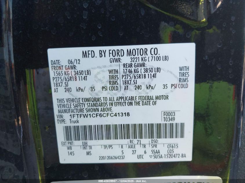 Колір ЧорнийЦиліндри 8VIN 1FTFW1CF6CFC41318Стан СтаціонарноУшкодження Ліва сторона AutoRIA