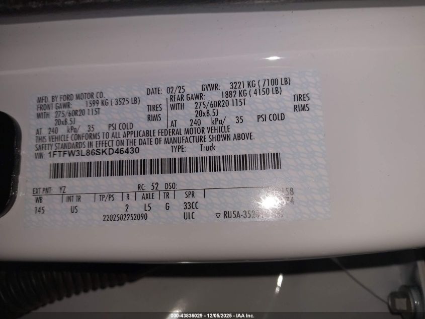 2025 FORD F-150 2025 року Бензин, 3.5, Повний привід, vin - 1FTFW3L86SKD46430 з США