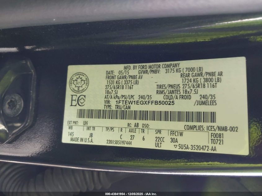 2015 FORD F-150 2015 року Бензин, 3.5, Повний привід, vin - 1FTEW1EGXFFB50025 з США