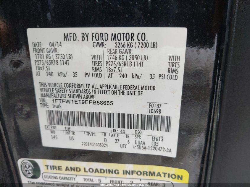 2014 FORD F-150 2014 року Бензин, 3.5, Повний привід, vin - 1FTFW1ET9EFB58665 з США