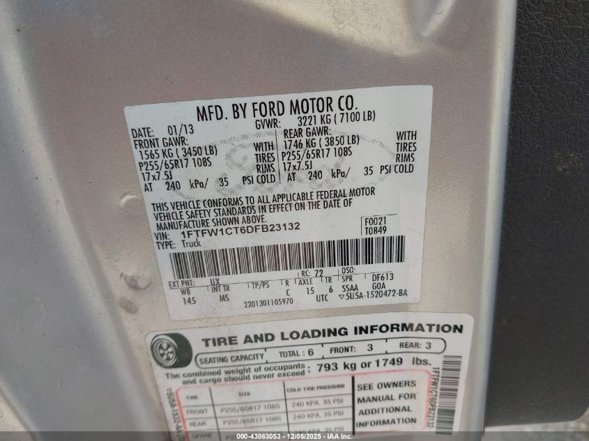 2013 FORD F-150 2013 року Бензин, 3.5, , vin - 1FTFW1CT6DFB23132 з США