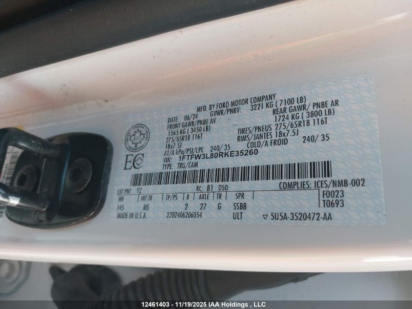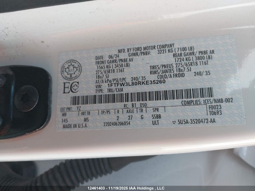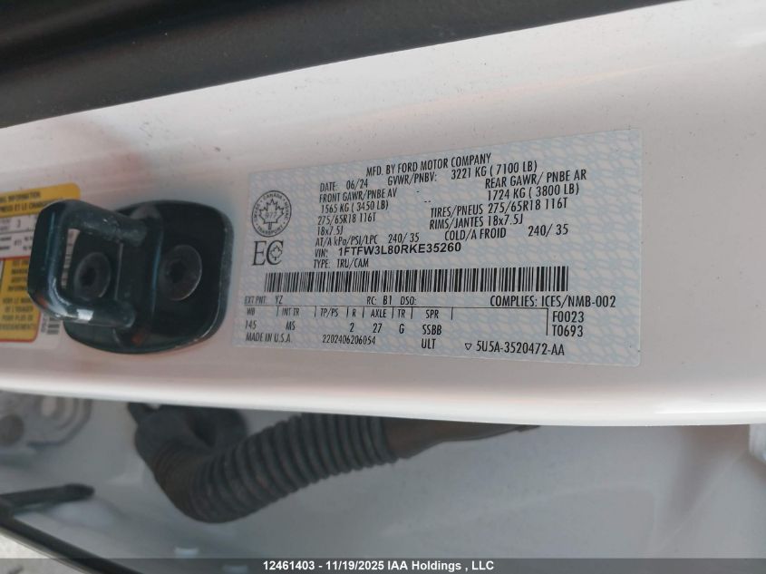 2024 FORD F-150 2024 року Бензин, , Повний привід, vin - 1FTFW3L80RKE35260 з США