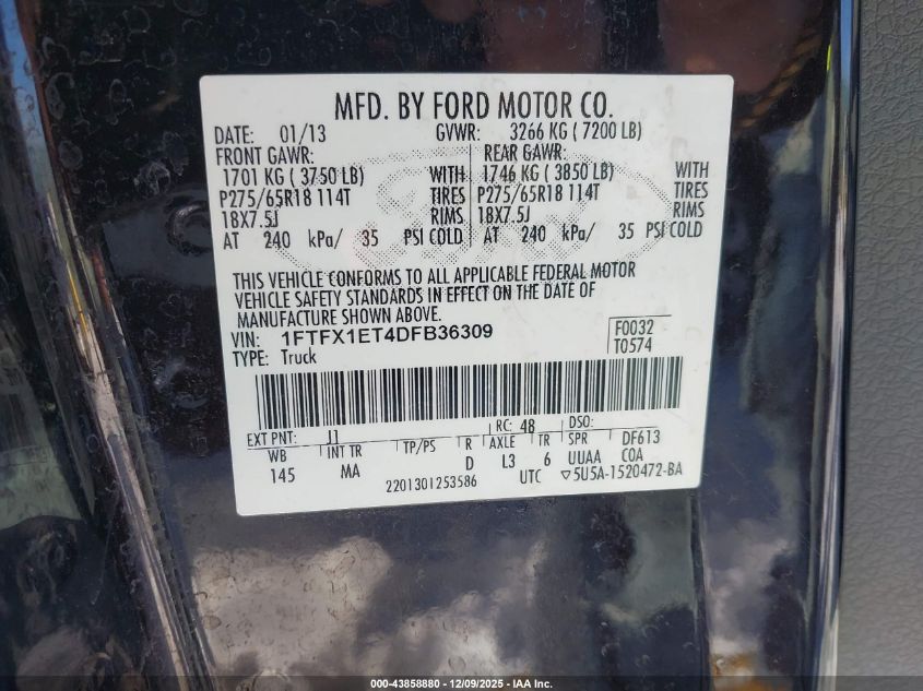 2013 FORD F-150 2013 року Бензин, 3.5, Повний привід, vin - 1FTFX1ET4DFB36309 з США