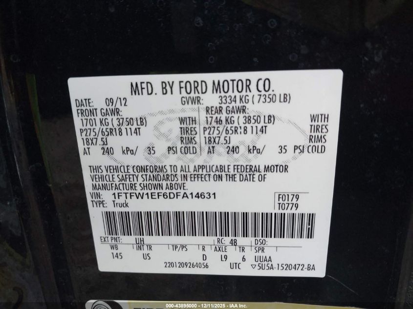 2013 FORD F-150 2013 року Бензин, 5.0, Повний привід, vin - 1FTFW1EF6DFA14631 з США