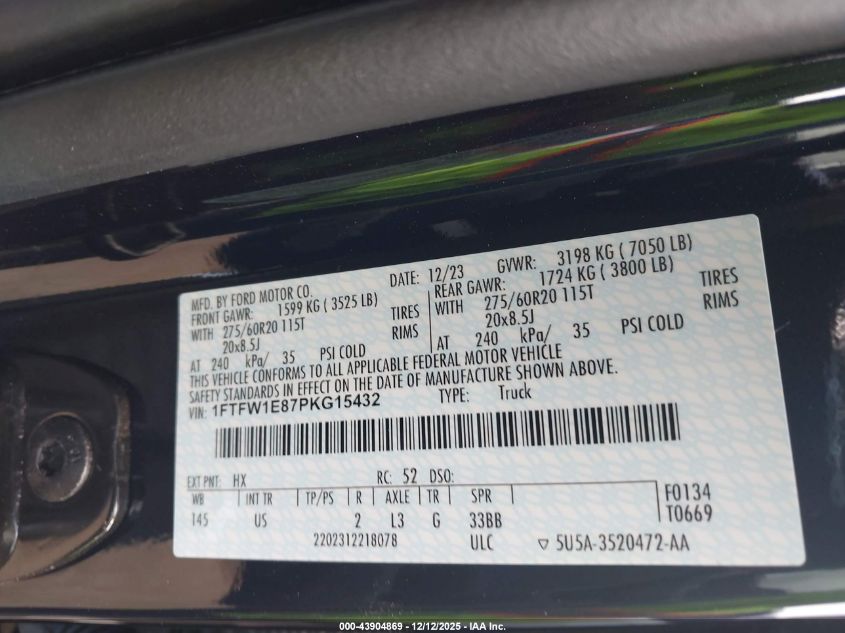 2023 FORD F-150 2023 року Бензин, 3.5, Повний привід, vin - 1FTFW1E87PKG15432 з США