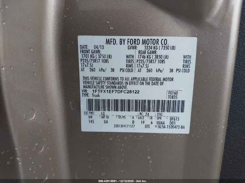 2013 FORD F-150 2013 року Бензин, 5.0, Повний привід, vin - 1FTFX1EF7DFC28122 з США
