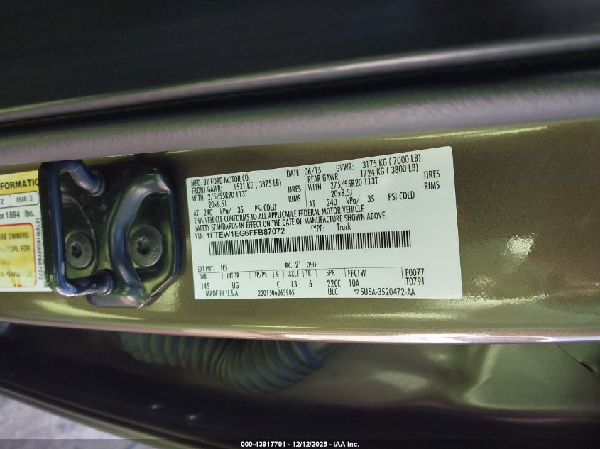 2015 FORD F-150 2015 року Бензин, 3.5, Повний привід, vin - 1FTEW1EG6FFB87072 з США