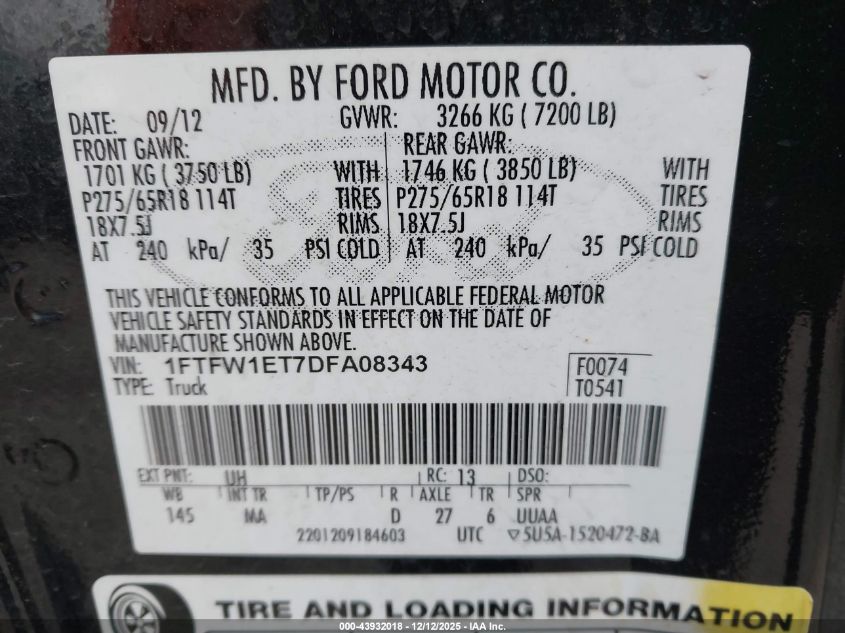 2013 FORD F-150 2013 року Бензин, 3.5, Повний привід, vin - 1FTFW1ET7DFA08343 з США