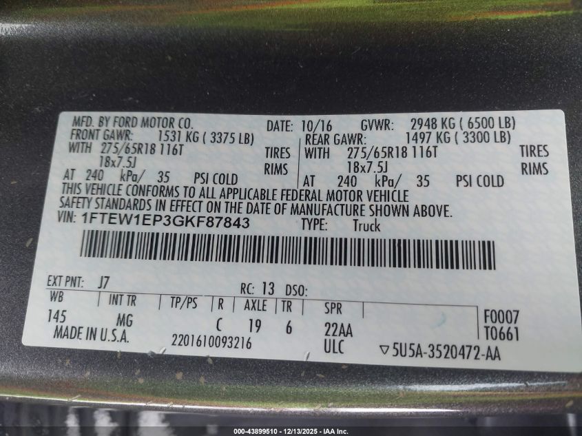 2016 FORD F-150 2016 року Бензин, 2.7, Повний привід, vin - 1FTEW1EP3GKF87843 з США