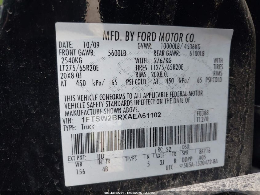 2010 FORD F-250 2010 року Дизель, 6.4, Повний привід, vin - 1FTSW2BRXAEA61102 з США
