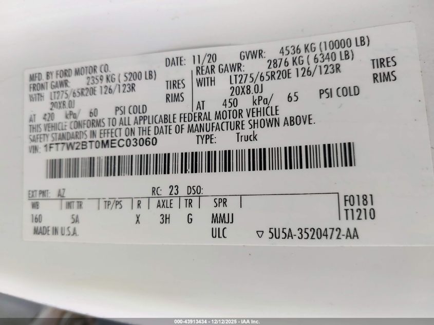 Колір БілийЦиліндри 8Привід Повний привідVIN 1FT7W2BT0MEC03060Стан Заводиться та їде (перевірено)Ушкодження Передня або задня AutoRIA
