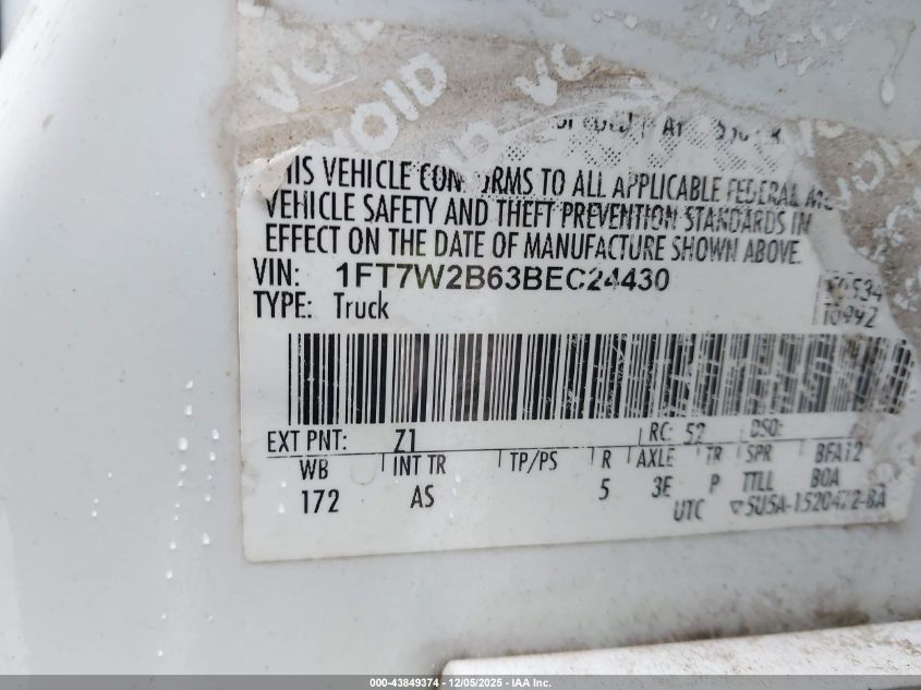 Колір БілийЦиліндри 8Привід Повний привідVIN 1FT7W2B63BEC24430Стан СтаціонарноУшкодження Звичайний зносДата аукціону 2025-12-10