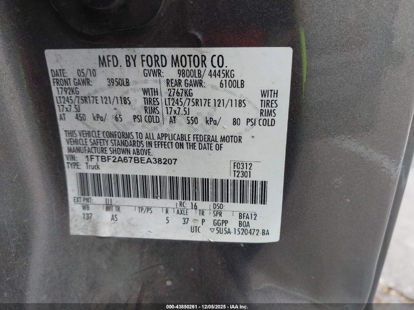 2011 FORD F-250 2011 року Бензин, 6.2, , vin - 1FTBF2A67BEA38207 з США