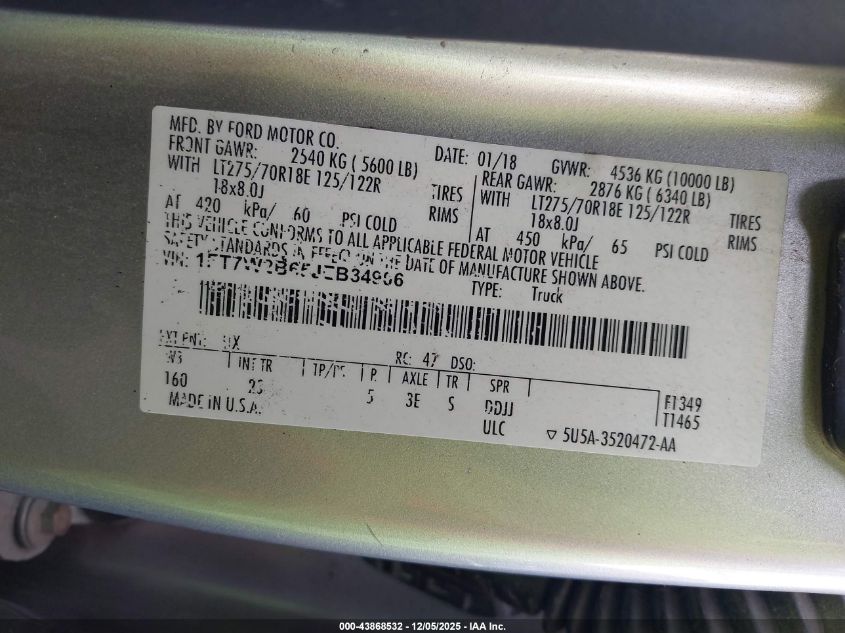 2018 FORD F-250 2018 року Бензин, 6.2, Повний привід, vin - 1FT7W2B65JEB34906 з США