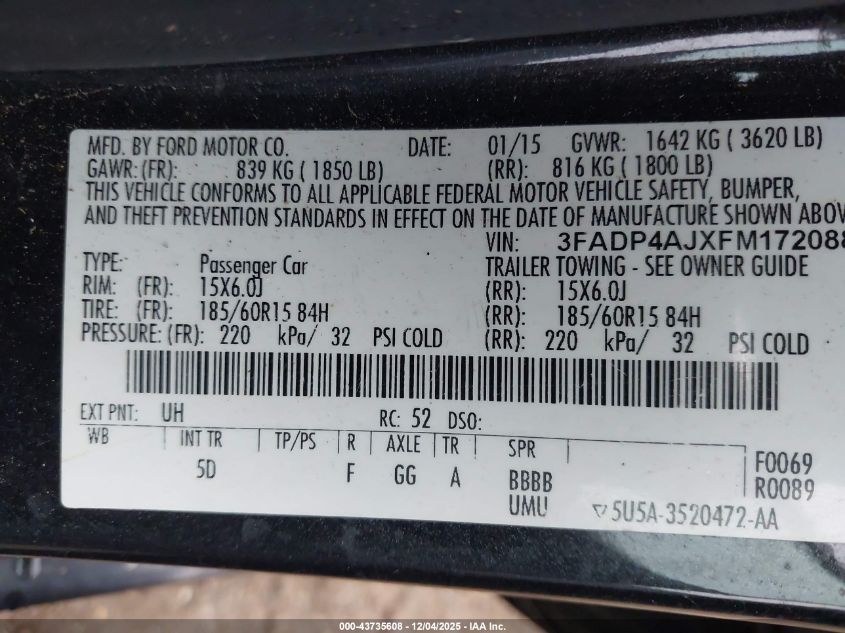 2015 FORD FIESTA 2015 року Бензин, 1.6, Передній привід, vin - 3FADP4AJXFM172088 з США