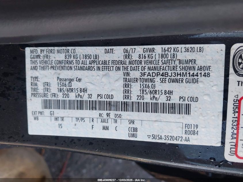 2017 FORD FIESTA 2017 року Бензин, 1.6, Передній привід, vin - 3FADP4BJ3HM144148 з США