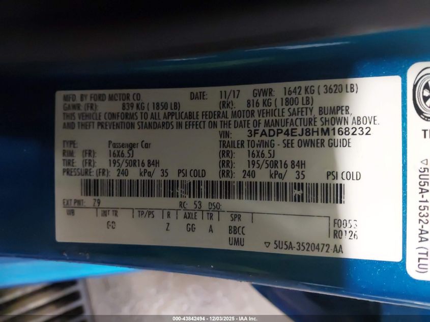 2017 FORD FIESTA 2017 року Бензин, 1.6, Передній привід, vin - 3FADP4EJ8HM168232 з США
