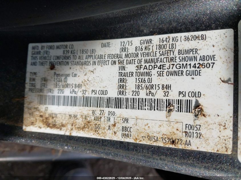 Колір СірийЦиліндри 4Привід Передній привідVIN 3FADP4EJ7GM142607Стан Заводиться та їде (перевірено)Ушкодження Передня або задняДата аукціону 2025-12-16 AutoRIA