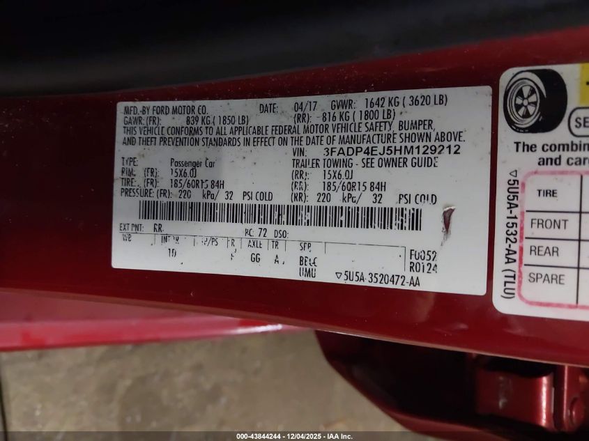 2017 FORD FIESTA 2017 року Бензин, 1.6, Передній привід, vin - 3FADP4EJ5HM129212 з США