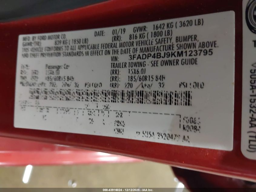 Колір АпельсиновийЦиліндри 4Привід Передній привідVIN 3FADP4BJ9KM123795Стан Заводиться та їде (перевірено)Ушкодження Передня або задня AutoRIA