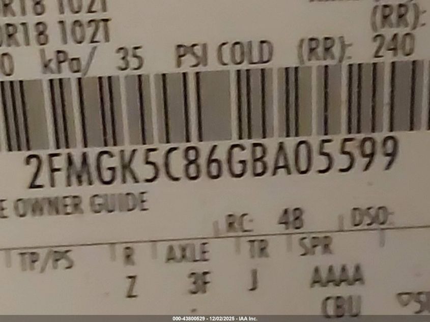 Колір СірийЦиліндри 6Привід Передній привідVIN 2FMGK5C86GBA05599Стан СтаціонарноУшкодження Права сторона AutoRIA
