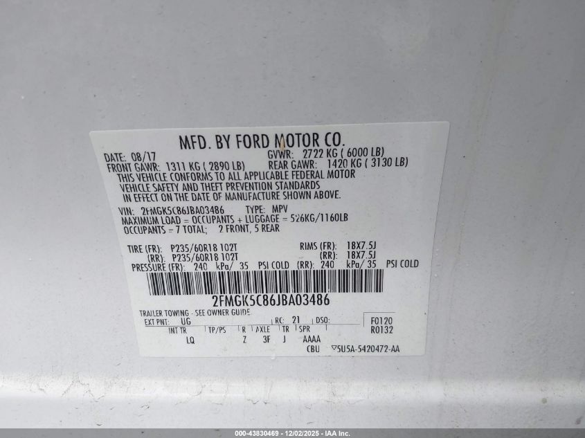 2018 FORD FLEX 2018 року Бензин, 3.5, Передній привід, vin - 2FMGK5C86JBA03486 з США
