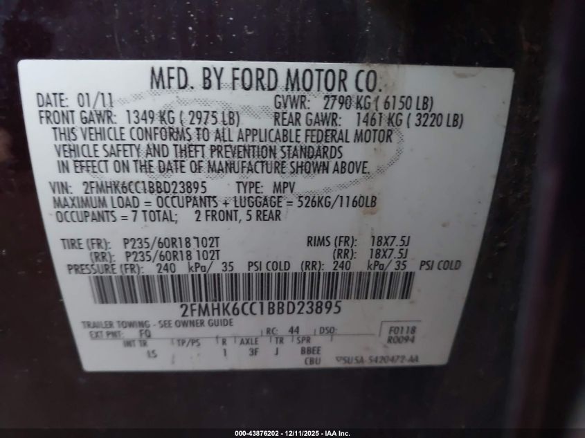Колір БордовийЦиліндри 6Привід Повний привідVIN 2FMHK6CC1BBD23895Стан СтаціонарноУшкодження Мотор