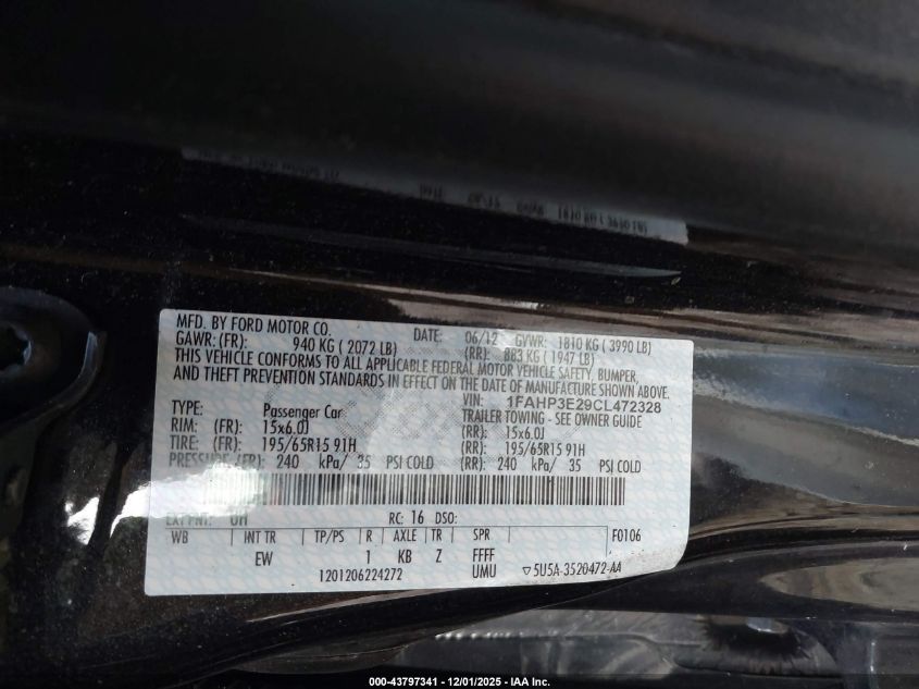 2012 FORD FOCUS 2012 року Бензин, 2.0, Передній привід, vin - 1FAHP3E29CL472328 з США
