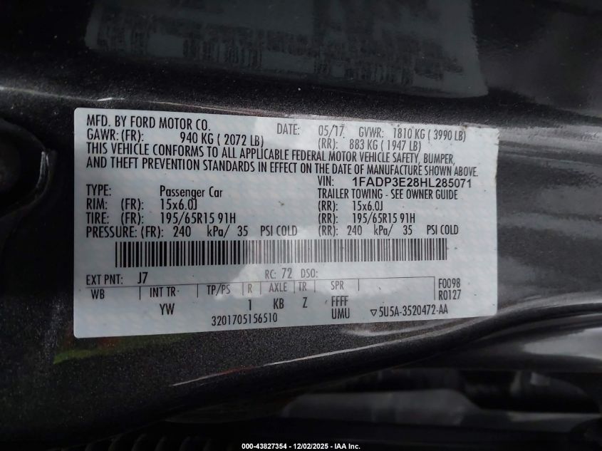 Колір СірийЦиліндри 4Привід Передній привідVIN 1FADP3E28HL285071Стан СтаціонарноУшкодження Права сторона AutoRIA