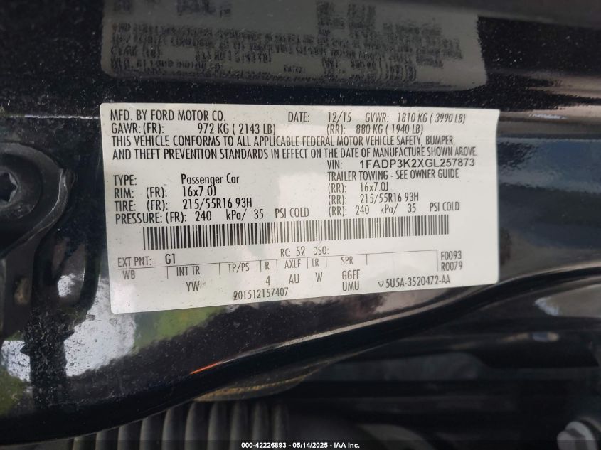 2016 FORD FOCUS 2016 року Бензин, 2.0, Передній привід, vin - 1FADP3K2XGL257873 з США