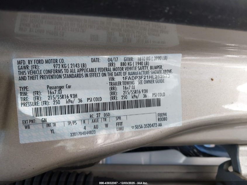 2017 FORD FOCUS SE