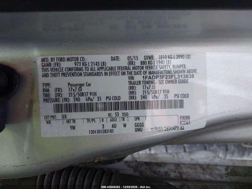 2015 FORD FOCUS 2015 року Бензин, 2.0, Передній привід, vin - 1FADP3F23FL313838 з США