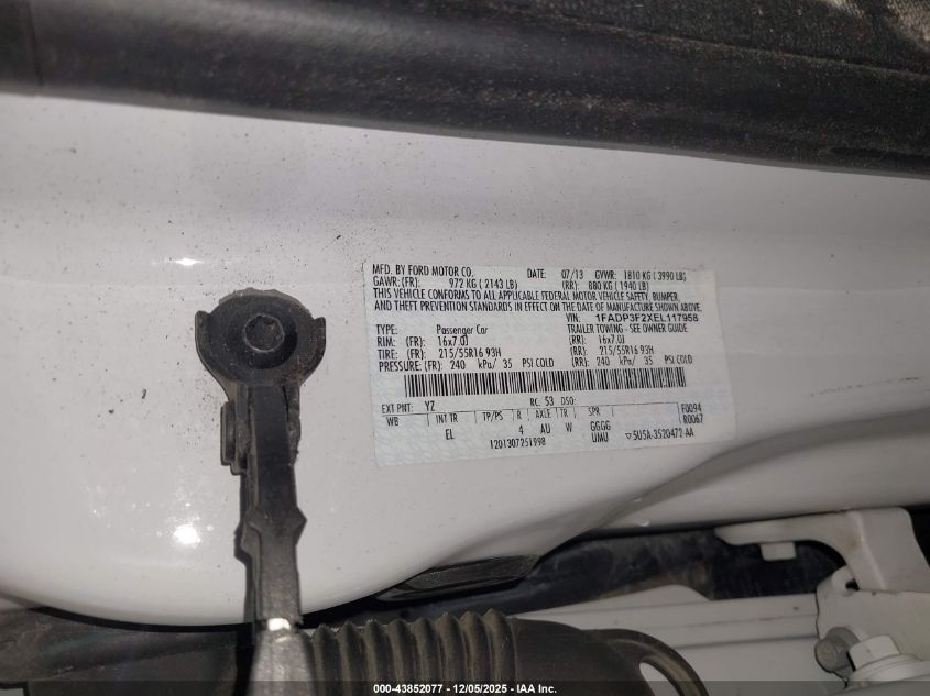 Колір БілийЦиліндри 4Привід Передній привідVIN 1FADP3F2XEL117958Стан СтаціонарноУшкодження Передня або задня AutoRIA