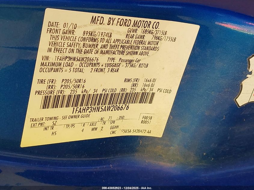 2010 FORD FOCUS 2010 року Бензин, 2.0, Передній привід, vin - 1FAHP3HN5AW206676 з США
