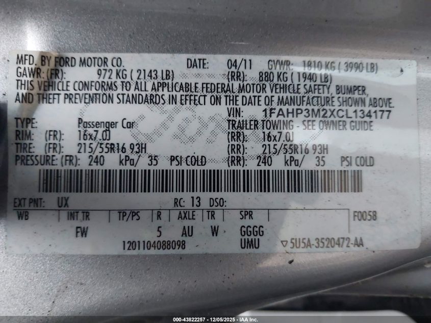 Колір СрібнийЦиліндри 4Привід Передній привідVIN 1FAHP3M2XCL134177Стан Заводиться та їде (перевірено)Ушкодження Передня права AutoRIA