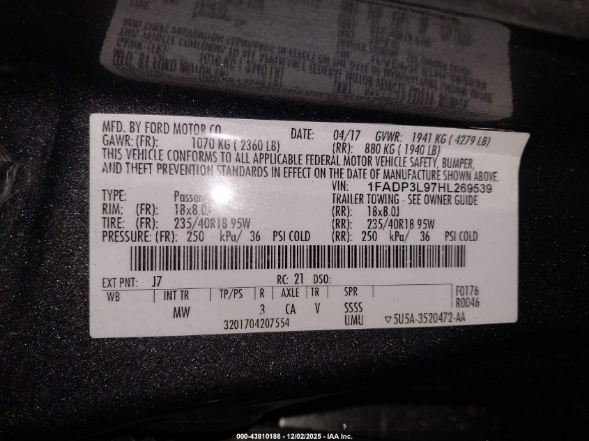 Колір СірийЦиліндри 4Привід Передній привідVIN 1FADP3L97HL269539Стан Заводиться та їде (перевірено)Ушкодження Передня або задня AutoRIA
