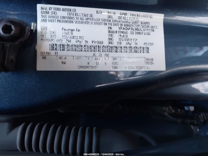 Колір СинійЦиліндри 4Привід Передній привідVIN 1FADP3L90JL312138Стан СтаціонарноУшкодження Передня і задня AutoRIA