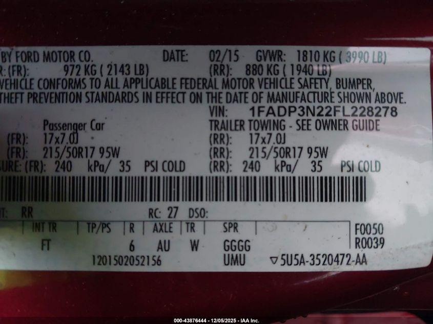 Колір ЧервонийЦиліндри 4Привід Передній привідVIN 1FADP3N22FL228278Стан СтаціонарноУшкодження Звичайний знос AutoRIA