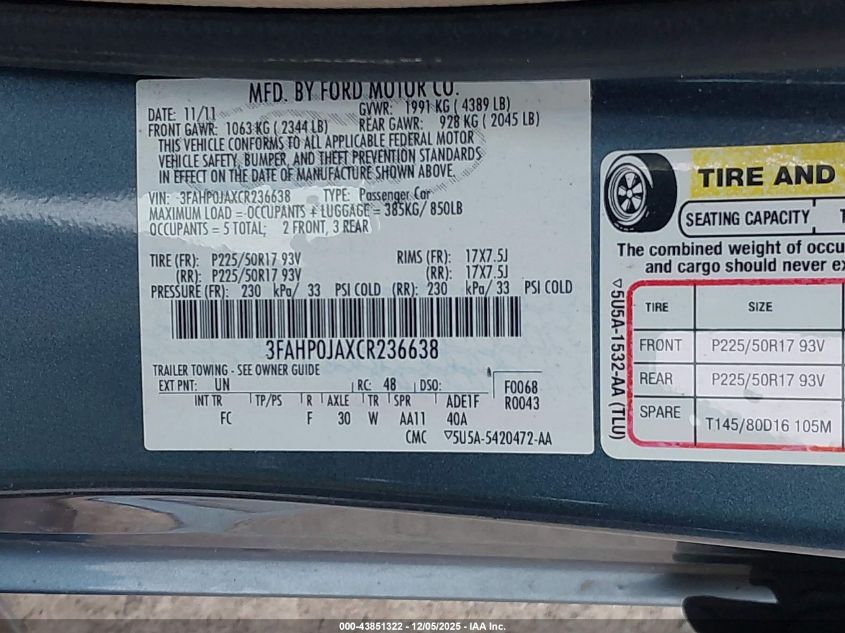 2012 FORD FUSION SE