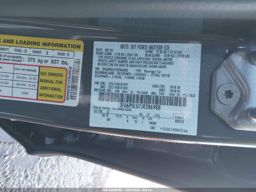 2018 FORD FUSION HYBRID 2018 року Гібрид, 2.0, Передній привід, vin - 3FA6P0LU7JR286988 з США