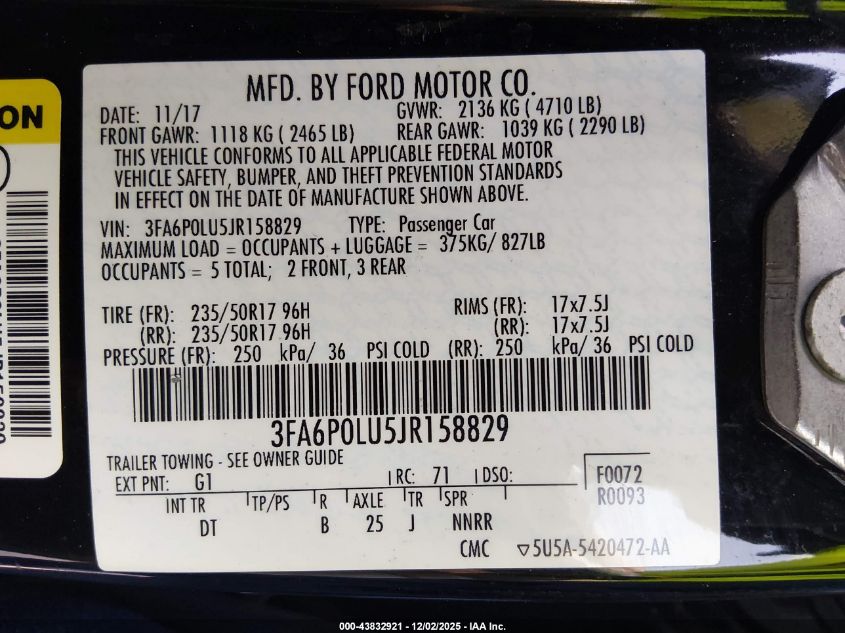 2018 FORD FUSION HYBRID 2018 року Гібрид, 2.0, Передній привід, vin - 3FA6P0LU5JR158829 з США
