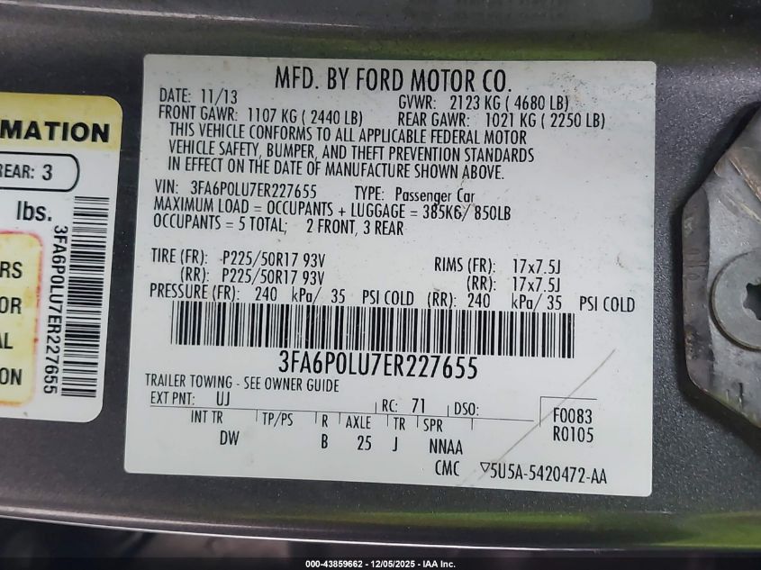 Колір СірийЦиліндри 4Привід Передній привідVIN 3FA6P0LU7ER227655Стан Заводиться та їде (перевірено)Ушкодження Ліва сторона AutoRIA