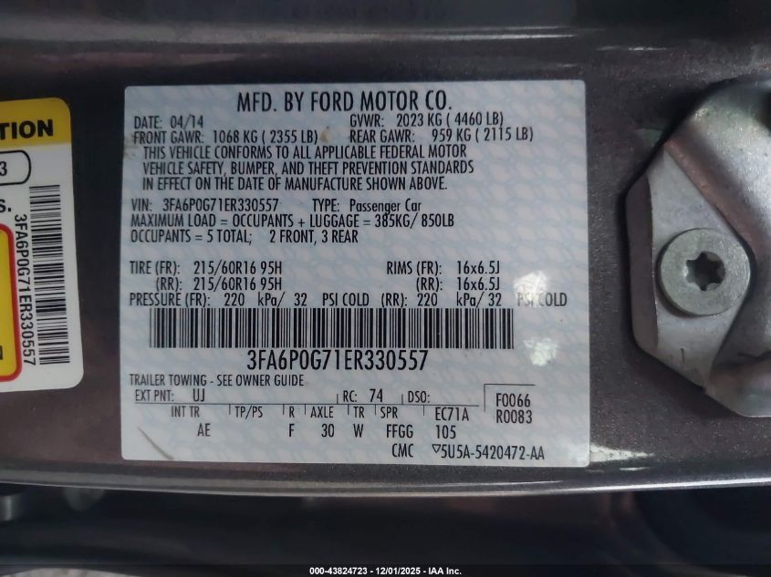 2014 FORD FUSION 2014 року Бензин, 2.5, Передній привід, vin - 3FA6P0G71ER330557 з США