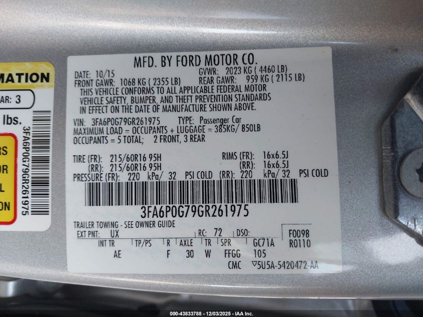 2016 FORD FUSION S