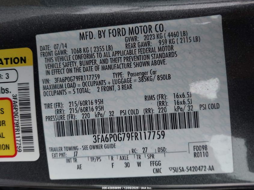 2015 FORD FUSION 2015 року Бензин, 2.5, Передній привід, vin - 3FA6P0G79FR117759 з США
