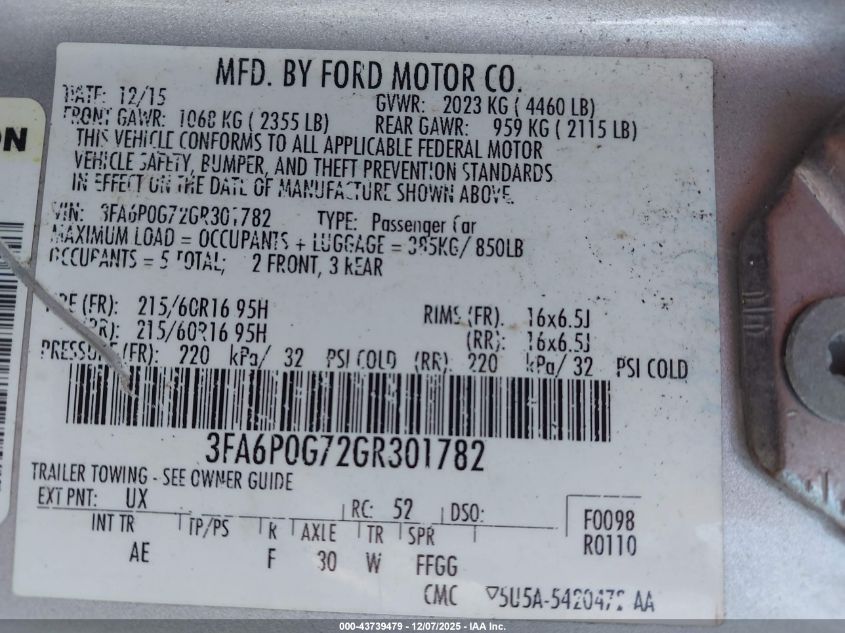 2016 FORD FUSION 2016 року Бензин, 2.5, Передній привід, vin - 3FA6P0G72GR301782 з США