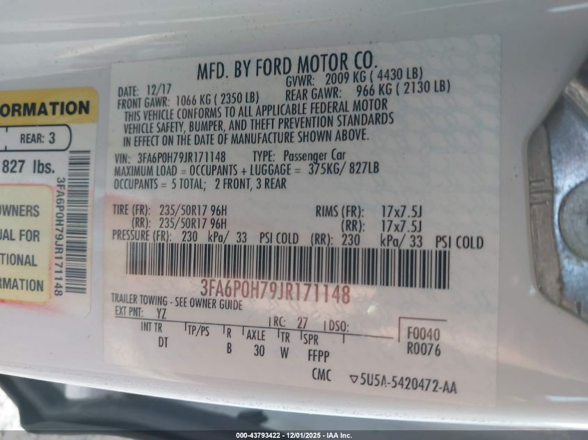 2018 FORD FUSION 2018 року Бензин, 2.5, Передній привід, vin - 3FA6P0H79JR171148 з США